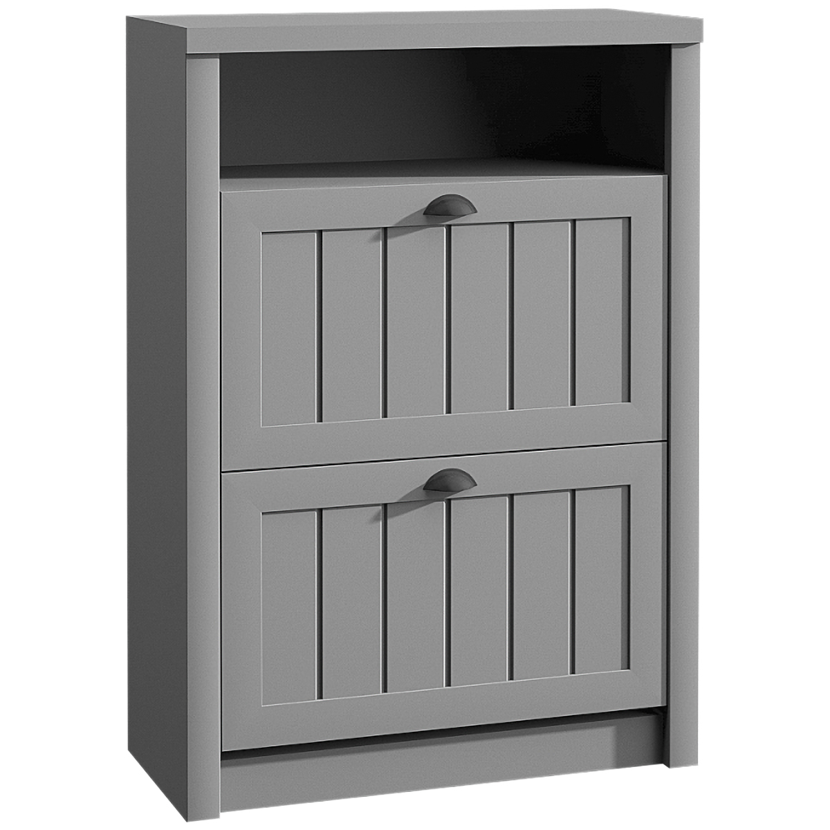 Botník (skrinka na topánky) PROVANCE SNB poskytuje rôznorodý úložný priestor. Disponuje otvorenou policou a dvoma výklopnými zásuvkami. Rozmery botníka sú (ŠxHxV): 80x36x113 cm, je v nadčasovom sivom farebnom prevedení. Originálne úchytky určite nezostanú bez povšimnutia. Prineste si kúsok…