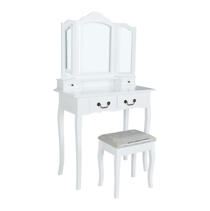 KONDELA Regina New toaletný stolík s taburetkou biela / strieborná / zlatá