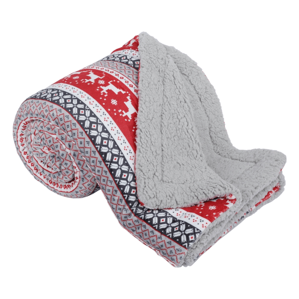 KONDELA Renife obojstranná baránková deka 150×200 cm sivá / biela / vzor