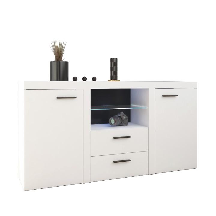 Moderná komoda ROCHESTER je dvojdverová komoda s dvomi zásuvkami a poličkou uprostred, ktorú odporúčame dokúpiť k obývacej stene Rochester. Materiál použitý na výrobu je laminovaná DTD vo farebnom prevedení biela, pričom na výber je aj v prevedení dub sonoma. Ku komode možno doobjednať LED…