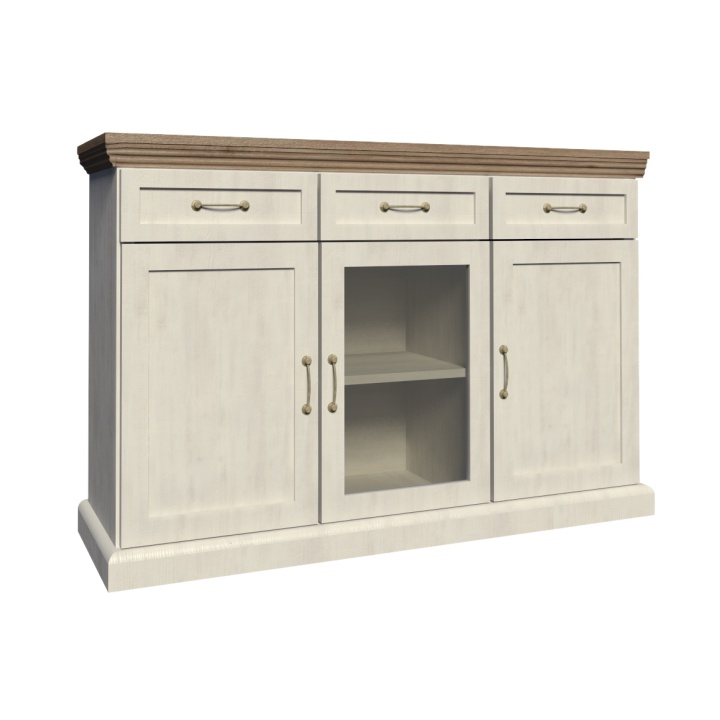 KONDELA Royal K1S trojdverová komoda biela sosna nordická / dub divoký