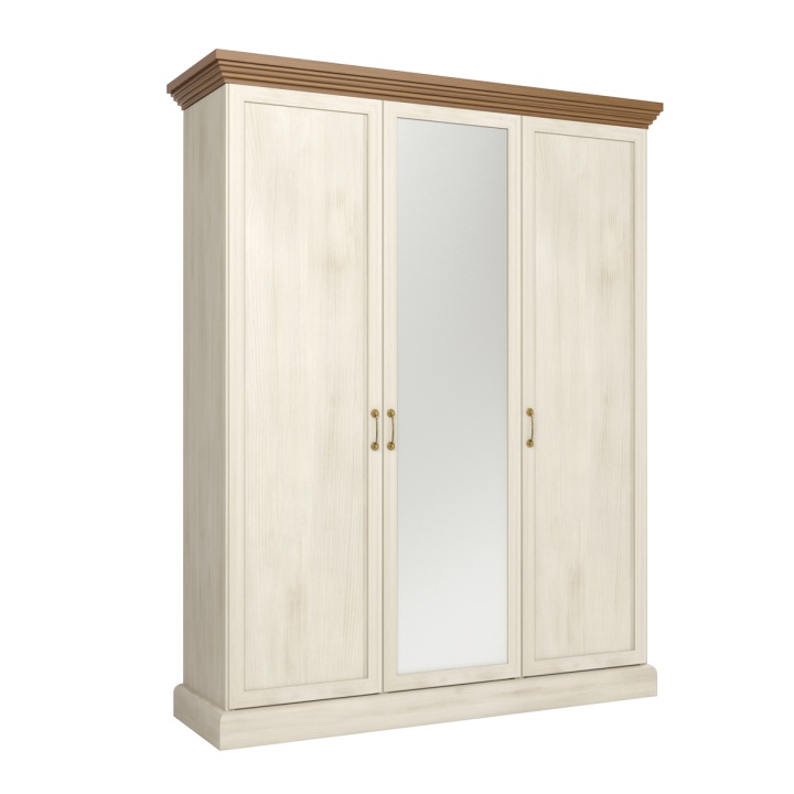 Skriňa ROYAL S3D je trojdverová šatníková skriňa, ktorú možno kombinovať s ostatnými prvkami z modelovej rady Royal. Vo vnútri skrine sa nachádzajú 2 vešiakové tyče a 3 police v strednej časti. Zrkadlo je umiestnené vpredu na stredných dverách. Systém Royal je elegantná sektorová zostava vyrobená…
