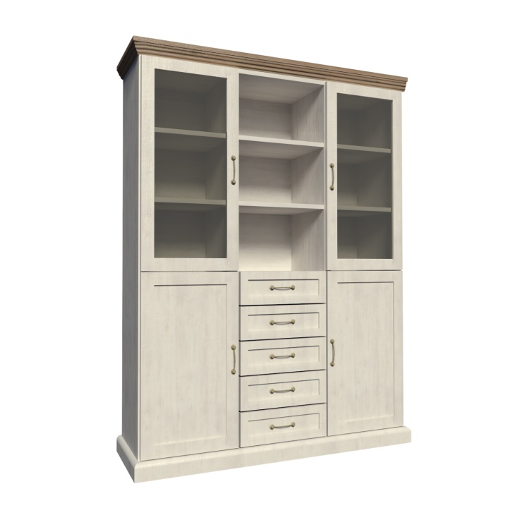 Vitrína ROYAL W2D je štvordverová vitrína s piatimi zásuvkami a dvomi odkladacími poličkami, ktorú možno kombinovať s ostatnými prvkami z modelovej rady Royal. Systém Royal je elegantná sektorová zostava vyrobená v anglickom štýle, ktorú si môžete vyskladať podľa Vašich potrieb a predstáv. Zostavu…