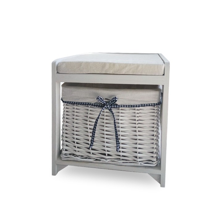 Lavica RUBY 1 predstavuje originálny doplnok do Vašej predsiene, spálne či kúpeľne. Je vyrobená z dreva vo farebnom prevedení starobiela. Lavica má pevný rám s vankúšom na vrchu a 1 prútený košík na triedenie a uloženie rôznych predmetov. Výška sedenia je 45 cm a hĺbka sedenia je 34 cm.