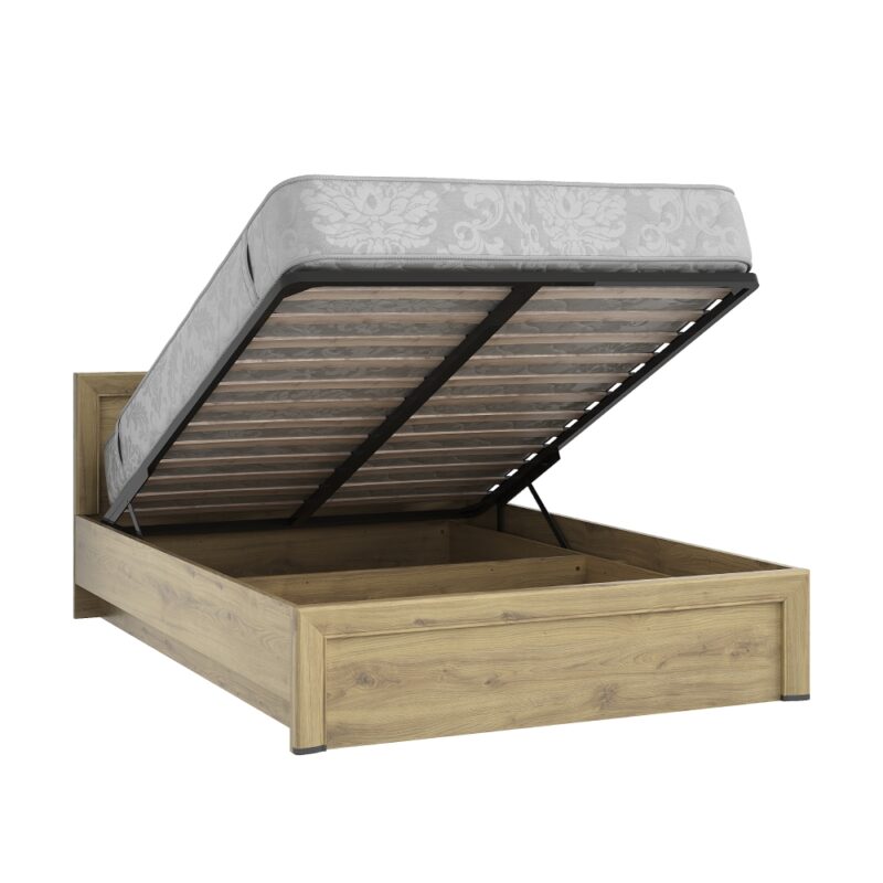 KONDELA Safari 140 manželská posteľ s roštom a úložným priestorom dub navarra