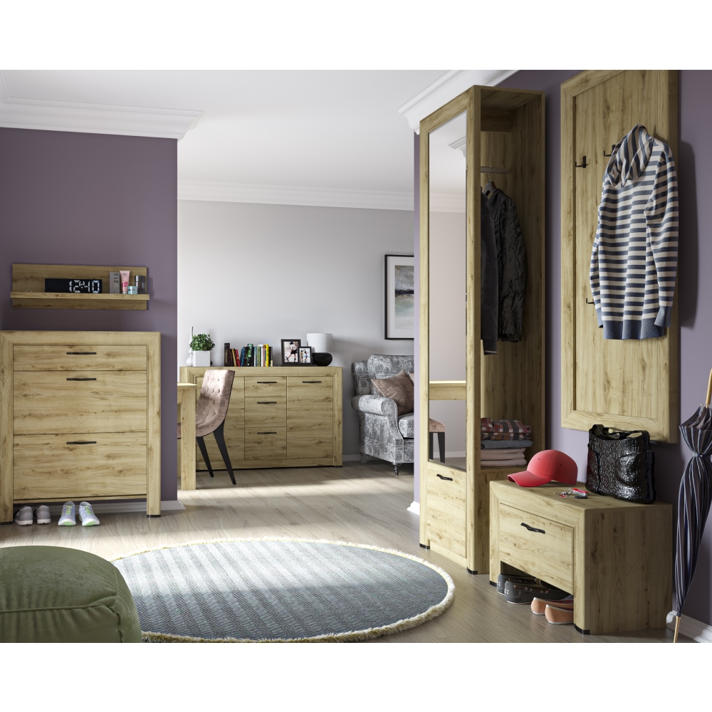 Predsieňový nábytok SAFARI pozostáva z komponentov, ktoré sa štýlovo hodia do každého vstupného priestoru. Zabezpečia poriadok a prehľadné usporiadanie všetkých vašich vecí. Nábytok je vyrobený z aglomerovaného materiálu v podobe laminovanej DTD, doplnenej…