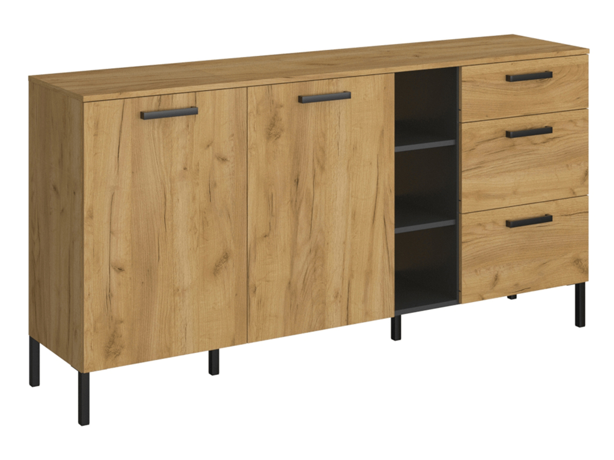 KONDELA Santana 2D3S dvojdverová komoda so zásuvkami dub craft zlatý / antracit