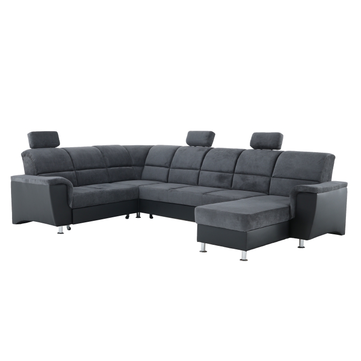 KONDELA Santiago L rohová sedačka u s rozkladom a úložným priestorom sivá / čierna