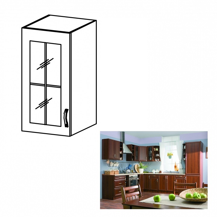 Rustikálna horná kuchynská skrinka SICILIA G30S L je jednodverová skrinka so sklom, ktorá je vnútri rozdelená policou na 2 odkladacie priestory. Sklo je priezračné, zdobené jemným ornamentom. Dvierka sa otvárajú pomocou plastovej úchytky. Ľavé prevedenie umožňuje otváranie dvierok do ľavej strany.…