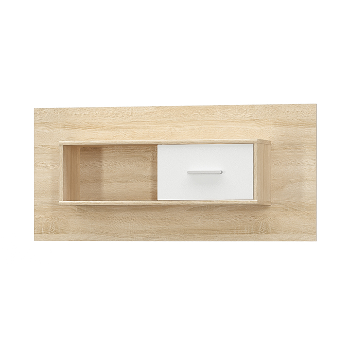 Visiaca skrinka TEYO 1D nádherne oživí steny v izbách Vašich ratolestí. Poskytne tiež priestor pre fotky, kvety, trofeje či iné dekorácie. Rozmery skrine sú (ŠxHxV): 120x23x55 cm. Je vyrobená z kvalitnej laminovanej DTD (drevotriesková doska). Jemná farebná kombinácia dubu sonoma s bielou dodáva…
