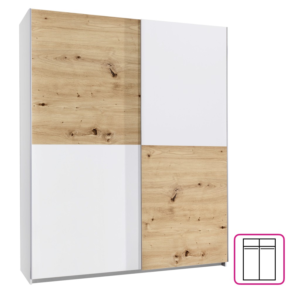 Domovská stránka » Katalóg » KONDELA Tiner šatníková skriňa s posuvnými dverami dub artisan / biela