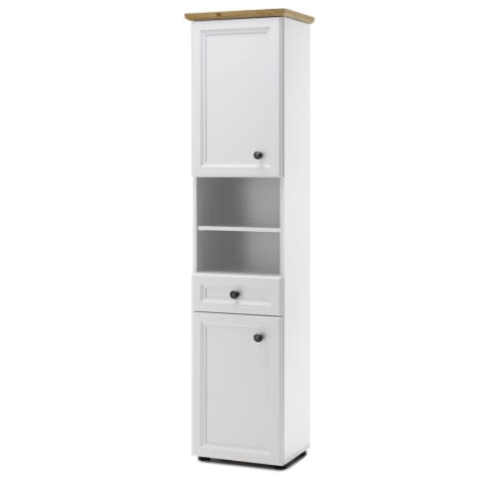 Vysoká kúpeľňová skrinka TOSKANA by nemala chýbať v žiadnej kúpeľni. Za dvierkami skriniek sa nachádza úložný priestor, ktorý rozdeľuje polička. Skrinka ponúka aj otvorený priestor a ešte aj zásuvku. Rozmery tejto praktickej a krásnej pomocníčky sú (ŠxHxV): 41x32x191 cm. Premeňte svoju kúpeľňu…