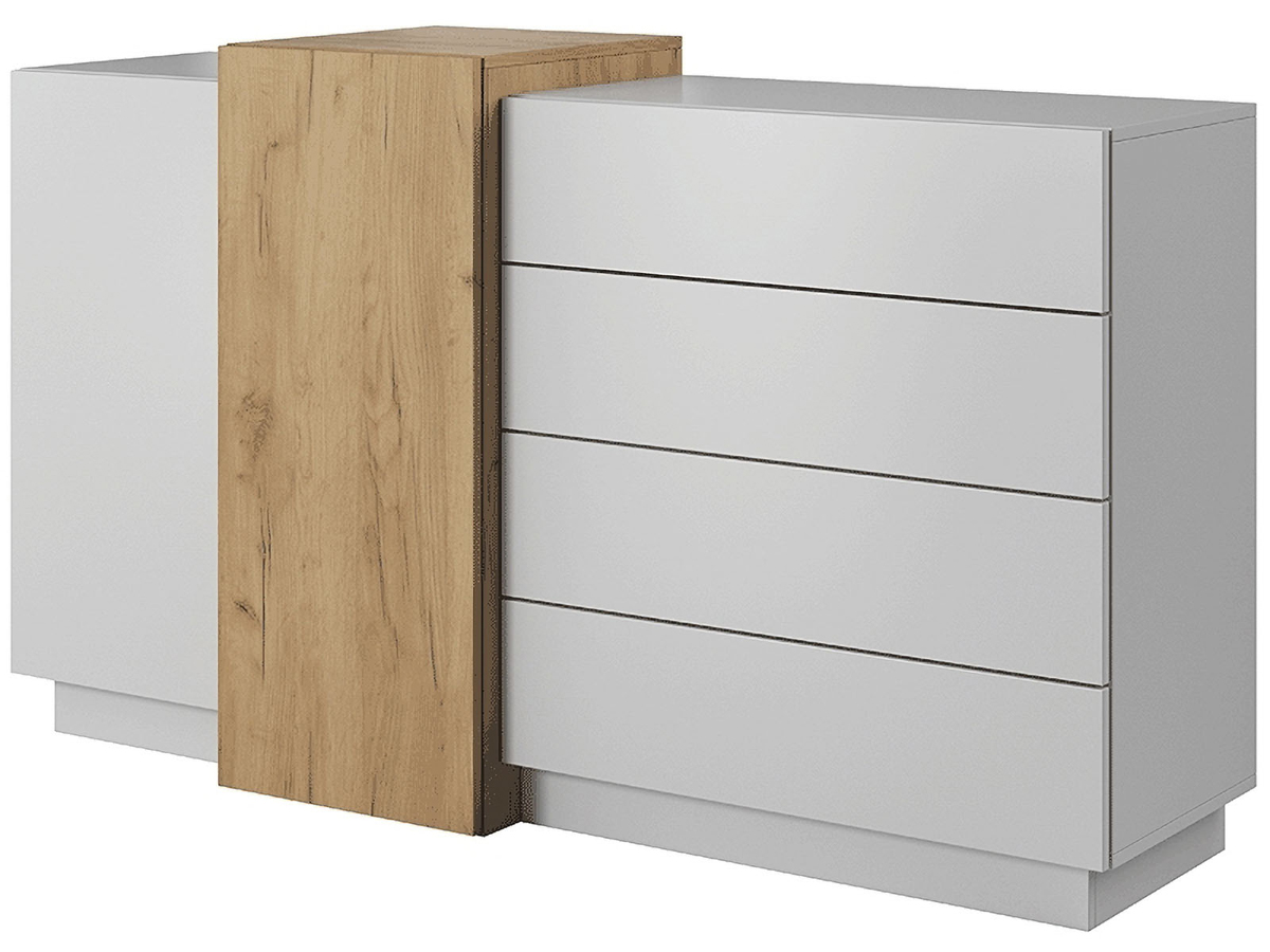 Domovská stránka » Katalóg » KONDELA Trio 2D4S dvojdverová komoda so zásuvkami biela / dub craft zlatý