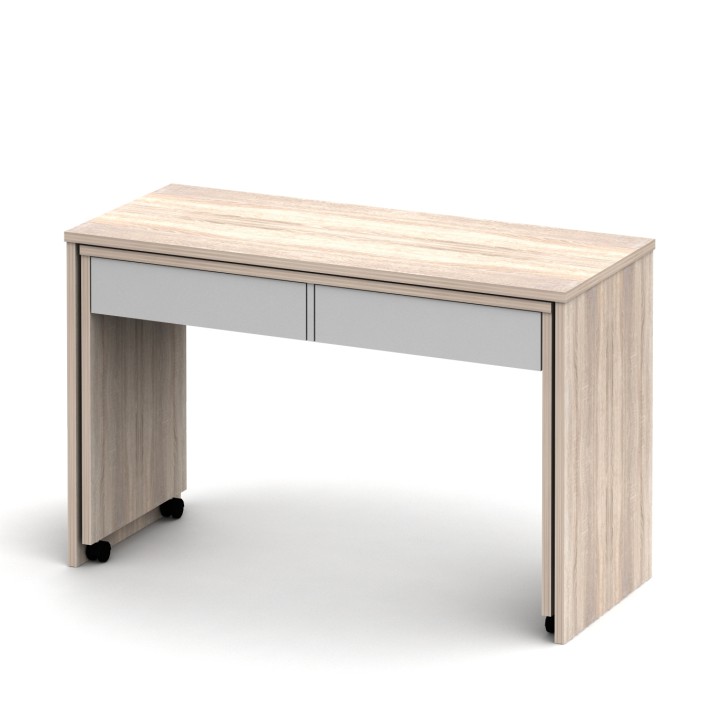 Rozkladací PC stôl VERSAL NEW je kvalitný slovenský výrobok vyrobený z laminovanej DTD vo farebnom prevedení dub sonoma / biela, pričom na výber je aj v iných farebných vyhotoveniach. Skladá sa z dvoch do seba zapadajúcich stolíkov. Menší stolík je doplnený 2 zásuvkami a kolieskami, vďaka ktorých…