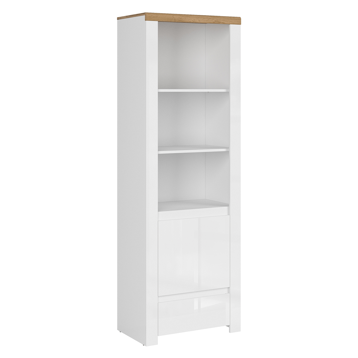 Domovská stránka » Katalóg » KONDELA Vilgo 1D1S jednodverový regál so zásuvkou biely lesk / dub wotan