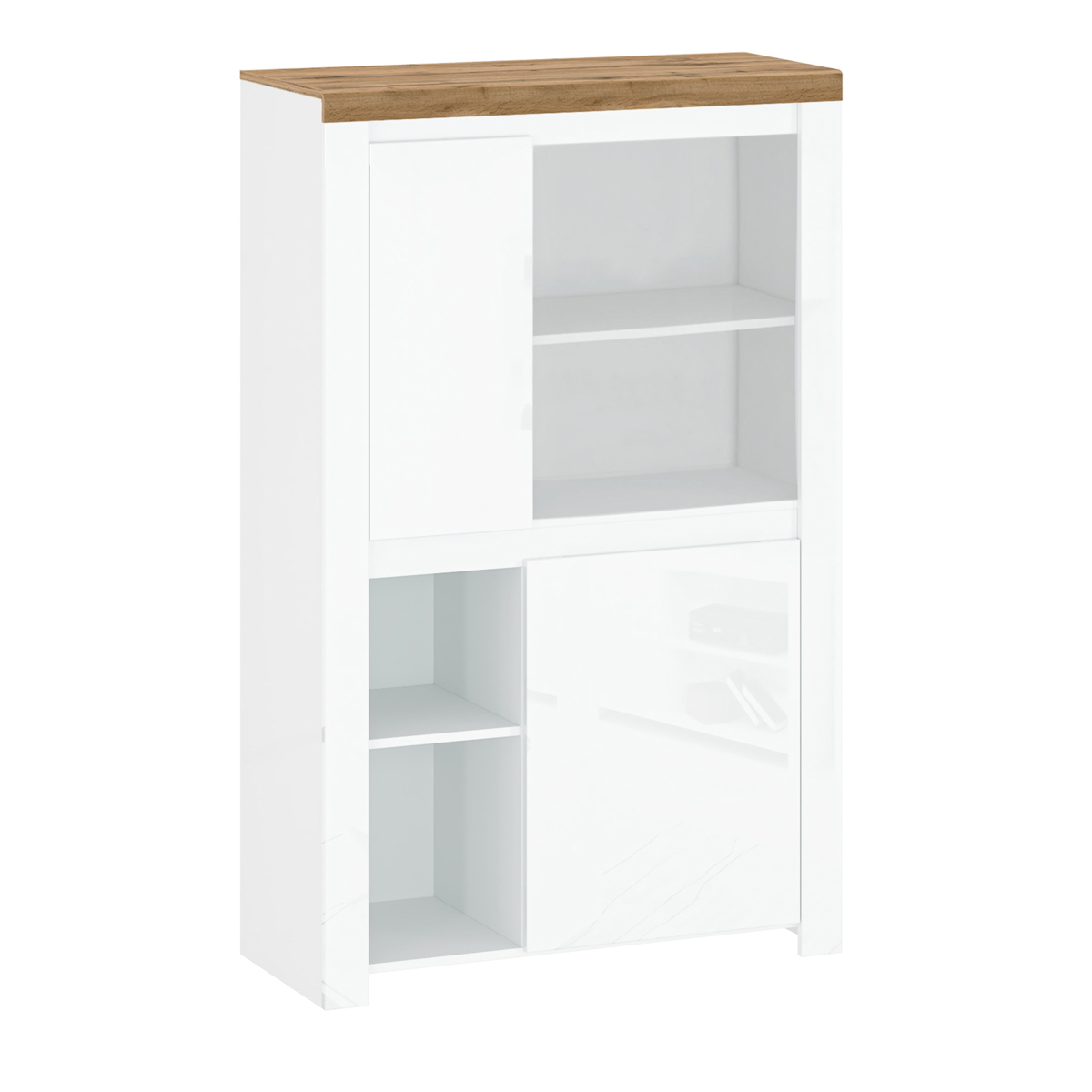 Domovská stránka » Katalóg » KONDELA Vilgo 2D dvojdverový regál biely lesk / dub wotan