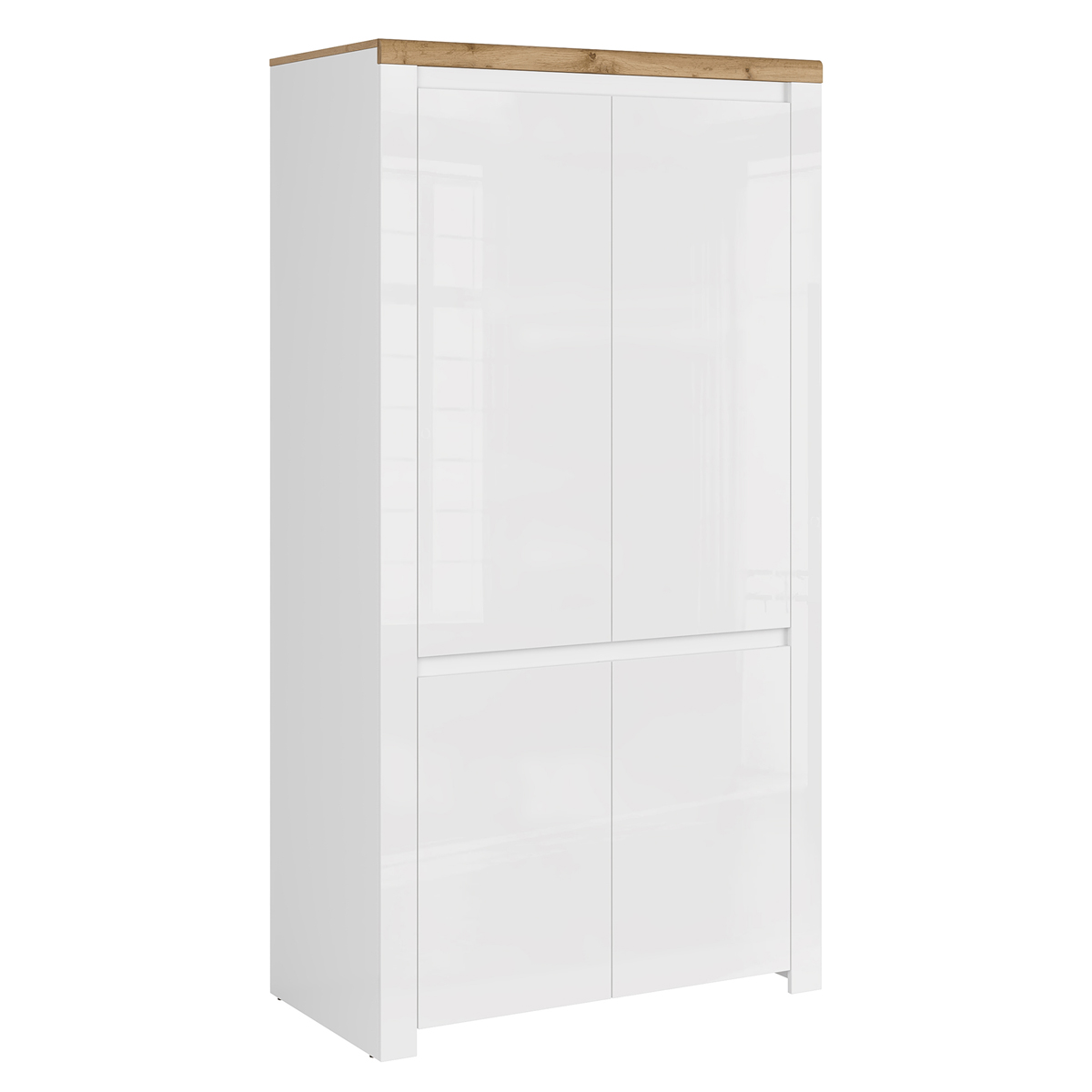 Domovská stránka » Katalóg » KONDELA Vilgo 4D štvordverová šatníková skriňa biely lesk / dub wotan
