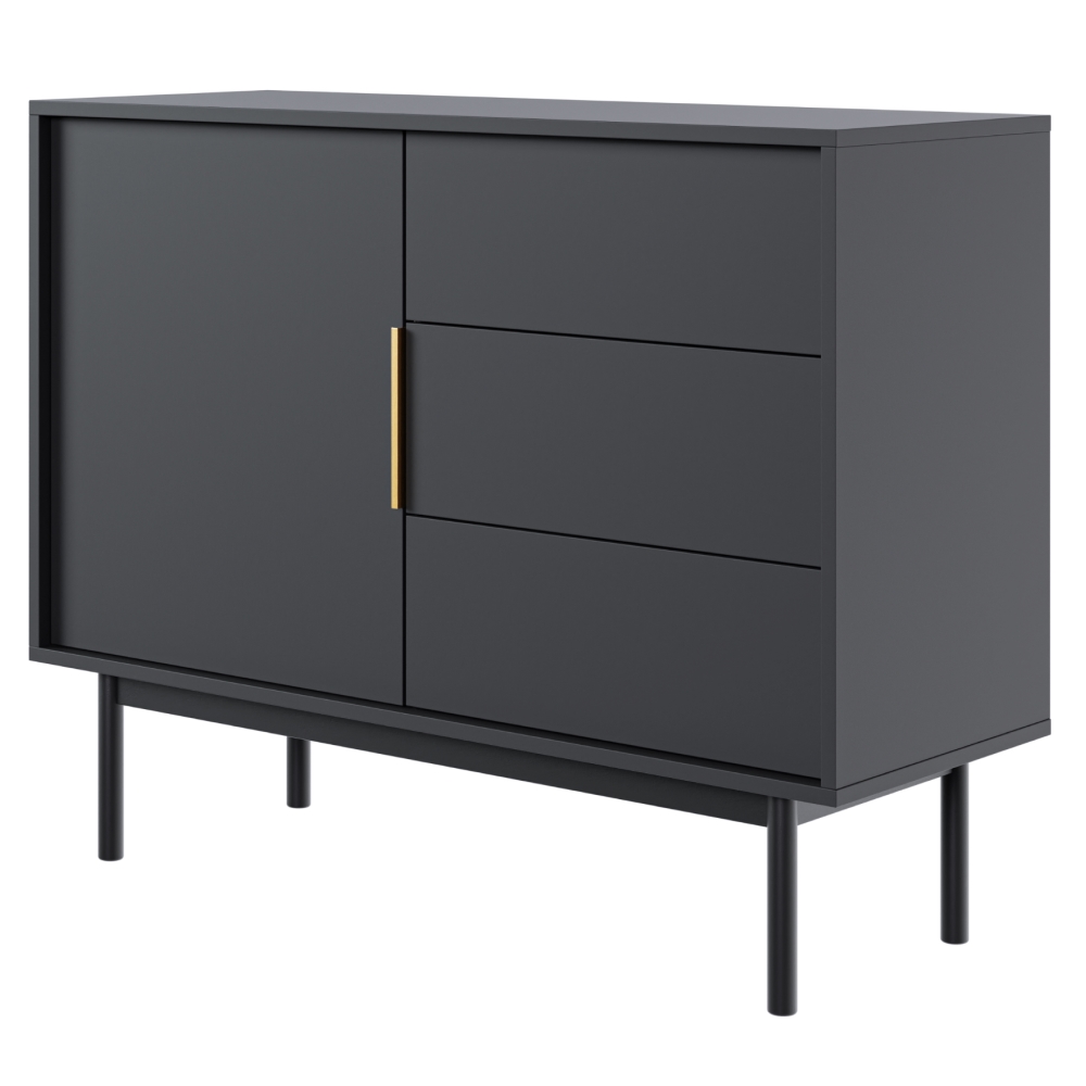 KONDELA Vivala 1D3S jednodverová komoda so zásuvkami čierna