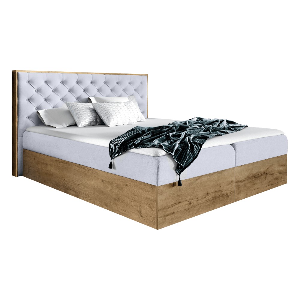 KONDELA Wood 3 boxspringová manželská posteľ sivá / dub lancelot