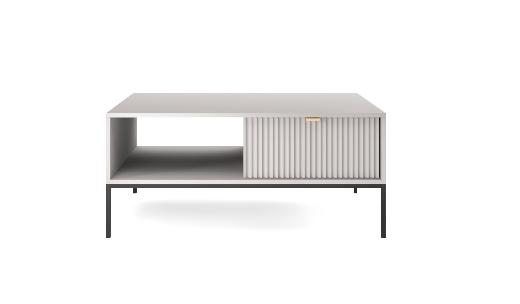 Dizajnový sektor NEW dodá Vašej obývacej miestnosti štýl. Pri sektore NEW sú použité najnovšie trendy v dizajne nábytku a kvalitný materiál. Korpus je vyrobený z 16mm LTD odolnej voči poškriabaniu, na dvierkach je použitá 18mm MDF riflovaná doska a úchyty sú hliníkové v zlatom farebnom prevedení. Všetky hrany sektoru NEW sú chránené ABS páskou.Konferenčný stolík L104 má moderný dizajn, ktorý Vás zaujme na prvý pohľad. Stolík má jednu zásuvku, kde si môžete odložiť veci, ktoré nechcete aby Vám bolo vidno a zároveň má otvorený priestor, kde si môžete odložiť svoje dekorácie. Materiál: 16mm LTD, ABS hrany, hliníkové zlaté úchyty, 18mm MDF riflovaná doska na dvierkachRozmer (ŠxVxH) : 104 x 46 x 68 cmVýška nožičiek: 20 cm Farebné prevedenie : sivýDodávame v demonte.