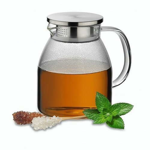 Kanvica LUNA prvotriednej kvality je ideálna pre prípravu čaju, domácich limonád, ľadového čaju, koktailov alebo ako karafa na servírovanie vody s ovocím. Kanvica má dostatočne široké hrdlo, to umožňuje kanvicu bez problému naplniť kockami ľadu alebo väčšími kúskami ovocia.Je vyrobená zo žiaruvzdorného borosilikátového skla, veko z ušľachtilej nehrdzavejúcej ocele 18/10, silikónové tesnenie v kryte zabraňuje vniku hmyzu alebo nečistôt do nápoja. Pootočením viečka môžete meniť 2 druhy otvorov pre nalievanie, možno ho teda použiť ako sitko, poprípade použiť väčší otvor, ak chcete nápoj nalievať aj s ovocím, bylinkami atď. Vhodná pre servírovanie studených aj horúcich nápojov. Možno použiť do mikrovlnnej rúry bez nehrdzavejúceho viečka. Sklo vydrží teploty až 150 °C.