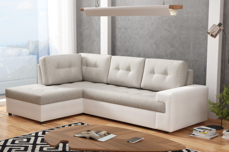 Rohová sedačka KORANDA je v modernom a nadčasovom prevedení. Svojím dizajnom očarí aj náročných zákazníkov.Sedačka je vyrobená z vlnovcovej pružiny, v kombinácii s PUR penou o hustote T-30. Je čalúnená kvalitnou látkou Vido 09 a ekokožou Madryt 120. Nožičky sú vyrobené z plastu.Sedacia súprava disponuje jedným úložným priestorom. Je vhodný na uloženie posteľnej bielizne, perín a podobne. Sedačka je rozkladacia, vhodná na príležitostné spanie. Rozmery spacej plochy: 215 x 150 cm.Rozmery (š,v,h): 256 x 76 x 172 cm. Výška bez opierkových vankúšov: 66 cm. Hĺbka sedenia: 60 cm. Výška sedacej plochy: 42 cm. Výška nožičiek: 5 cm.Sedačka KORANDA je v ľavom prevedení rohu. V ponuke nájdete aj v pravom prevedení.V ponuke nájdete aj ďalšie farebné prevedenia rohovej sedačky KORANDA.Dodávame v demontovanom stave.
