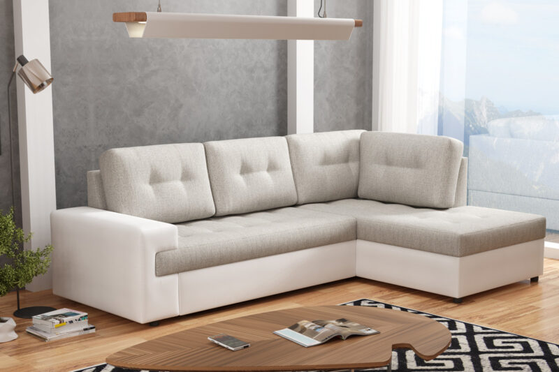 Rohová sedačka KORANDA je v modernom a nadčasovom prevedení. Svojím dizajnom očarí aj náročných zákazníkov.Sedačka je vyrobená z vlnovcovej pružiny, v kombinácii s PUR penou o hustote T-30. Je čalúnená kvalitnou látkou Vido 09 a ekokožou Madryt 120. Nožičky sú vyrobené z plastu.Sedacia súprava disponuje jedným úložným priestorom. Je vhodný na uloženie posteľnej bielizne, perín a podobne. Sedačka je rozkladacia, vhodná na príležitostné spanie. Rozmery spacej plochy: 215 x 150 cm.Rozmery (š,v,h): 256 x 76 x 172 cm. Výška bez opierkových vankúšov: 66 cm. Hĺbka sedenia: 60 cm. Výška sedacej plochy: 42 cm. Výška nožičiek: 5 cm.Sedačka KORANDA je v pravom prevedení rohu. V ponuke nájdete aj v ľavom prevedení.V ponuke nájdete aj ďalšie farebné prevedenia rohovej sedačky KORANDA.Dodávame v demontovanom stave.