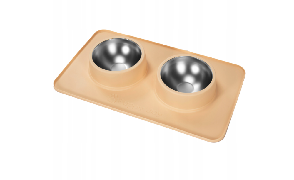 Kovová miska pre psa alebo mačku s praktickou silikonovou podložkou – rôzne farby béžová