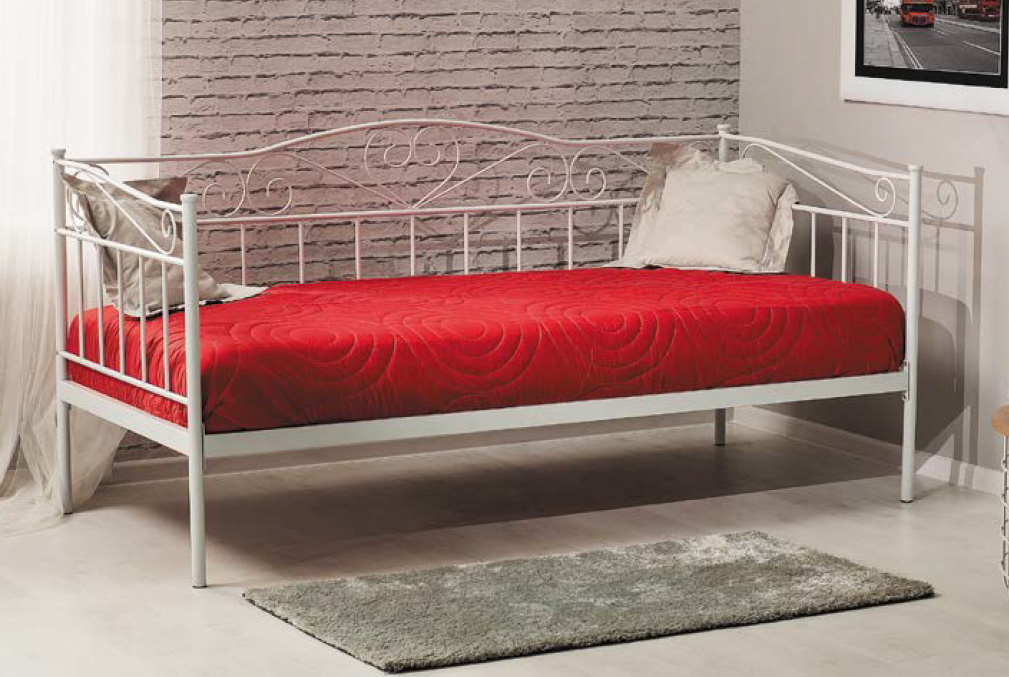 Dizajnová kovová posteľ BARMA je vhodná do dievčenských a študentských izieb. Kovová konštrukcia je s dekoračnými prvkami. Obľúbené biele farebné prevedenie. Rozmer (v/š/h) 97 x 208 x 96 cm. Rošt je vo výške cca 35 cm od zeme. Súčasťou postele je aj kovový rošt. Matrac je potrebné dokúpiť, odporúčame veľkosť 90 x 200. Ku posteli odporúčame nočný stolík ET-747. Posteľ BARMA je dostupná i v čiernej farbe. Dodávame v demonte.