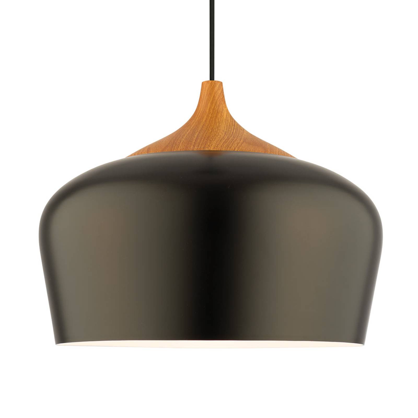 Jasné a priateľsky navrhnuté závesné svietidlo Voltige v čiernej farbe Elegantné závesné svietidlo Voltige sa vyznačuje škandinávskymi vplyvmi. Jeho dizajn je úchvatný, pretože opulentné tienidlo je lakované v čiernej farbe, ale v oblasti zavesenia ho zdobí dekoratívny prvok vo vzhľade dreva. Závesné svietidlo Voltige sa štýlovo dobre kombinuje s moderným tmavým interiérom. Táto lampa nadchne milovníkov čistého škandinávskeho štýlu. Svetlo je vyžarované veľkoryso smerom nadol. Závesné svietidlo možno použiť v obytných miestnostiach, ako je vstupný priestor, obývacia izba alebo kuchyňa. Aj kancelárske priestory môžu vďaka tomuto svietidlu získať individuálny charakter. Miestnosť je tak rovnomerne a útulne osvetlená