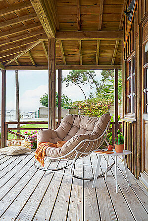 Relaxačné hojdacie kreslo so silným polstrovaním pre dokonalý odpočinok.