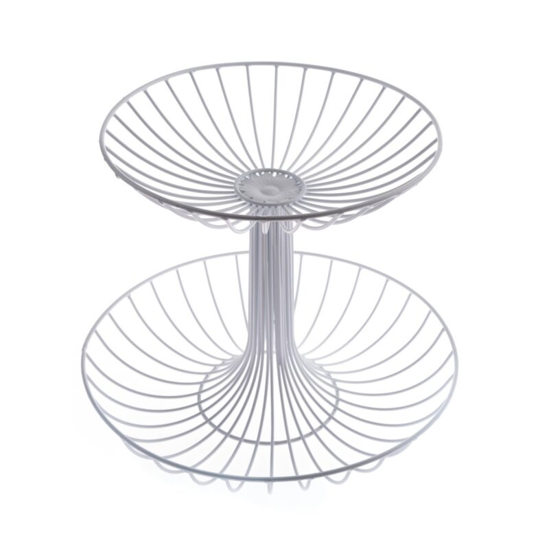 Tento drôtený etažér kombinuje elegantný tvar dvojposchodového stojana s kvalitným kovovým lakovaným drôtom, ktorý sa ľahko urdžuje. Vyzerá naozaj pekne a ušetrí vám množstvo miesta. Môžete v ňom skladovať nielen ovocie a zeleninu. Majte všetko po ruke a prehľadne na očiach.