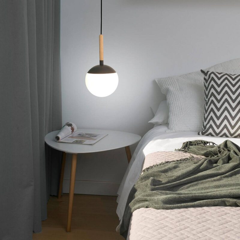 Dekoračné závesné svietidlo Moje vyrobené z dreva, kovu a skla Nielen materiály, vďaka ktorým je závesné svietidlo Mine opticky súčasťou severského dizajnu, ale aj celkový útulný dojem, že závesné svietidlo osvetľuje a na divákovi neosvetľuje listy. Jeho moderný vzhľad vyžaruje pokojné uvoľnenie, ktoré je posilnené svetelnou emisiou smerovanou do všetkých strán. Závesné svietidlo Mine je možné optimálne použiť ako plošné osvetlenie, pričom nezáleží na tom, kde sa nachádza pripojenie na napájanie, pretože je vybavené celkom 400 cm dlhým káblom, ktorý umožňuje individuálne umiestnenie.