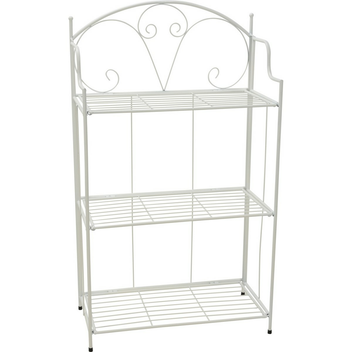 Dodajte svojej záhrade alebo balkónu krásny vzhľad s týmto romantickým bielym stojanom na rastliny, ktorý si môžete zariadiť podľa svojho. Stojan na rastliny a kvety s tromi policami je vhodný na vonkajšie použitie a možno využiť ako okrasný odkladací prvok na kvety alebo ako úložný priestor pre vaše záhradné náčinie. Kovový stojan je dostatočne pevný a stabilný, takže naň môžete bez problémov postaviť kvetináče a ďalšie nevyhnutnosti a navyše stále vyzerá krásne. Výhodou stojana na rastliny je jeho možnosť zloženia, takže ho ľahko uložíte v okamihu, keď nie je potreba.