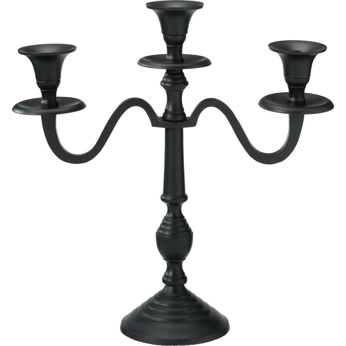 Kovový svietnik 3-ramenný 29x10x30 cm, farba čierna, dekor 2