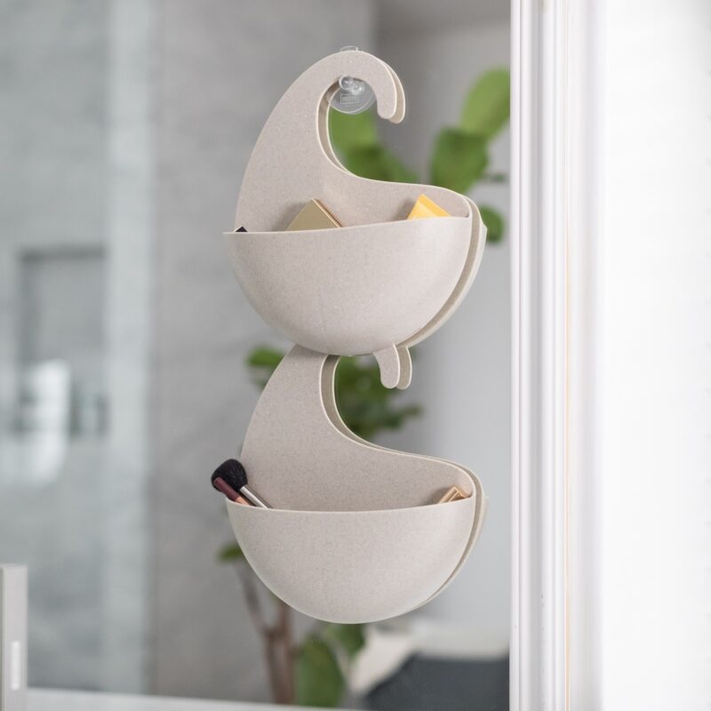 Tento minimalistický box sa skvele hodí na šampóny, sprchové gély, peelingy a ďalšiu kozmetiku či na umývacie huby. Môžete si kúpiť viac kusov, zavesiť do seba a tým ešte zvýšiť úložný priestor. Má 3 otvory na odtok vody, vo vašich kozmetických nevyhnutnostiach sa tak nebude tvoriť nežiaduca vlhkosť. Je vyrobený z recyklovaného materiálu, s prímesou celulózy.