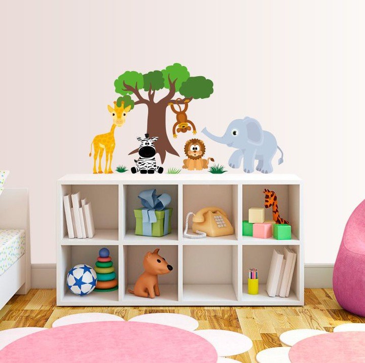Krásna nálepka na stenu rozkošné zvieratká 100 x 59 cm