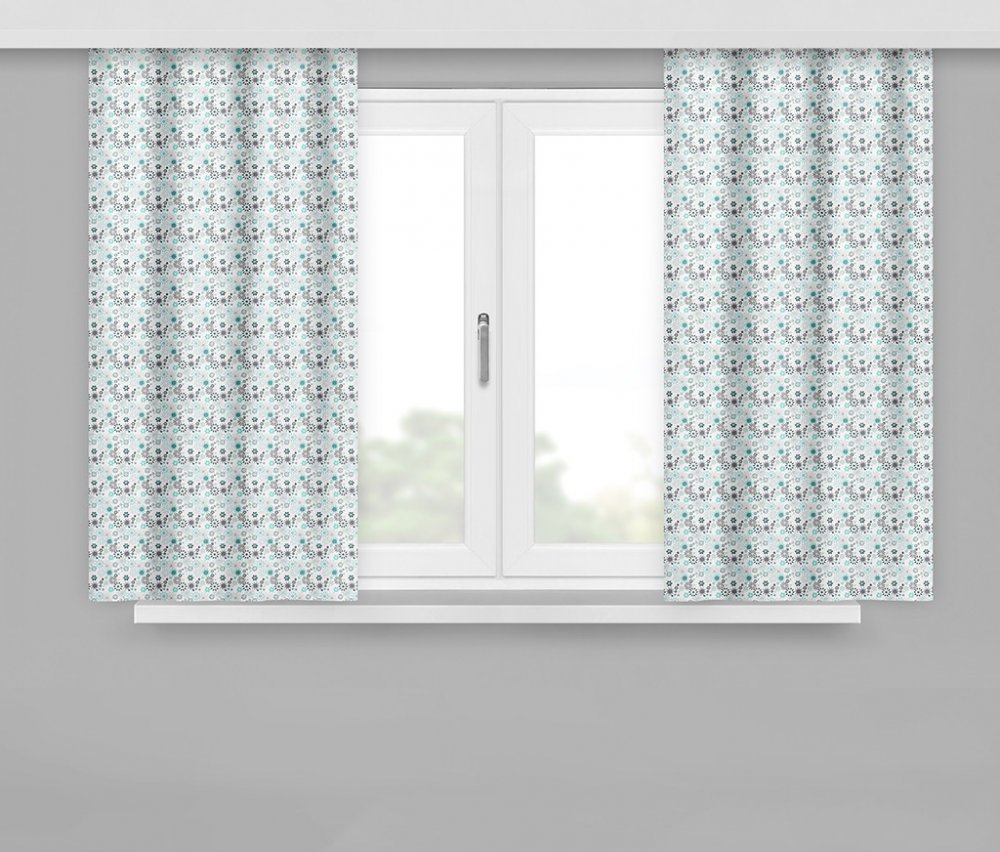 Krásny dekoračný záves v modro-sivej farbe so vzorom, krátky 160×170
