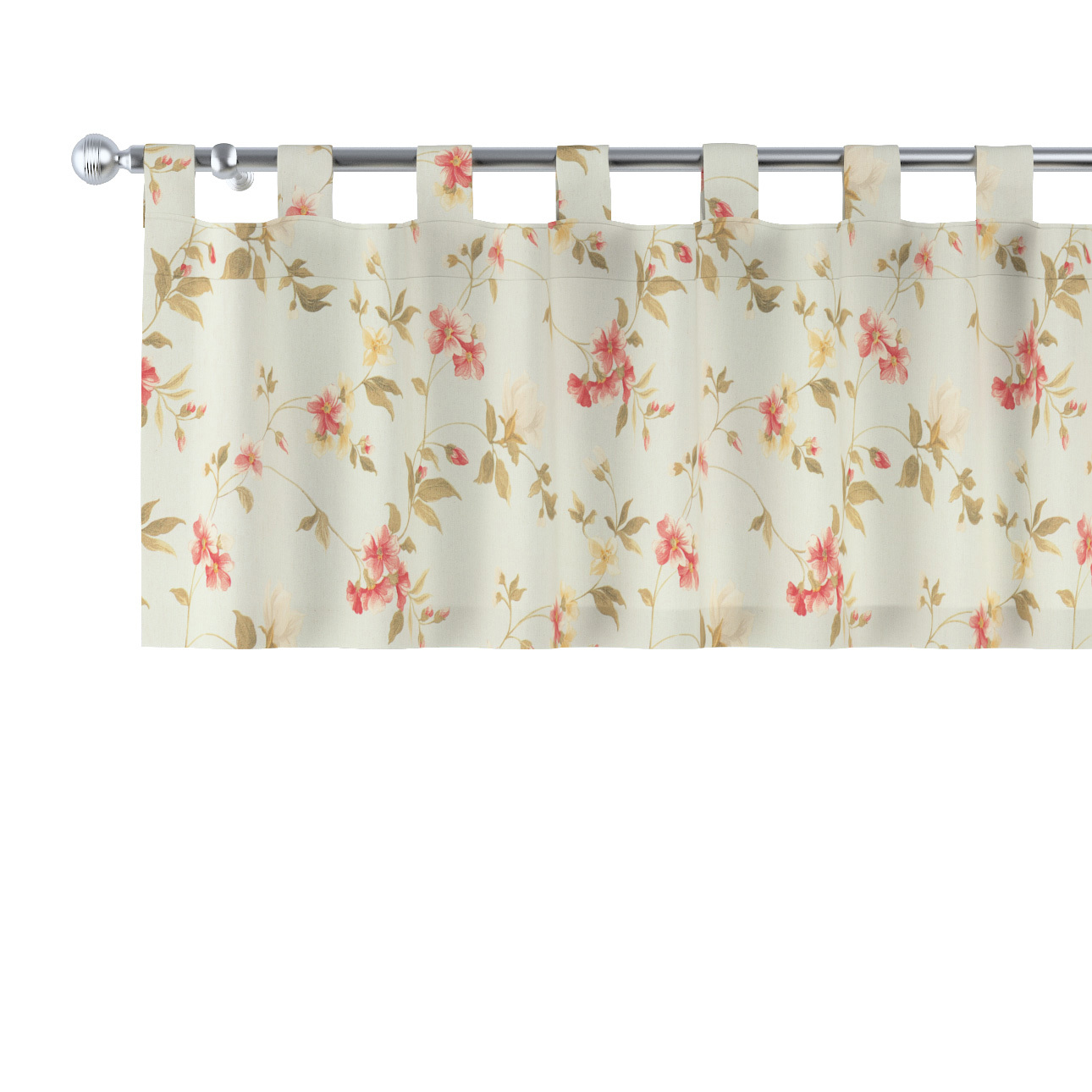 Dekoračný volán/krátky záves na pútkach. Dodá oknu romantický a štýlový vzhľad. Uvedená šírka volánu je šírka pred nariasením. POZOR: VZOR NA SPOJI VOLÁNOV NIE JE SÚMERNÝ.