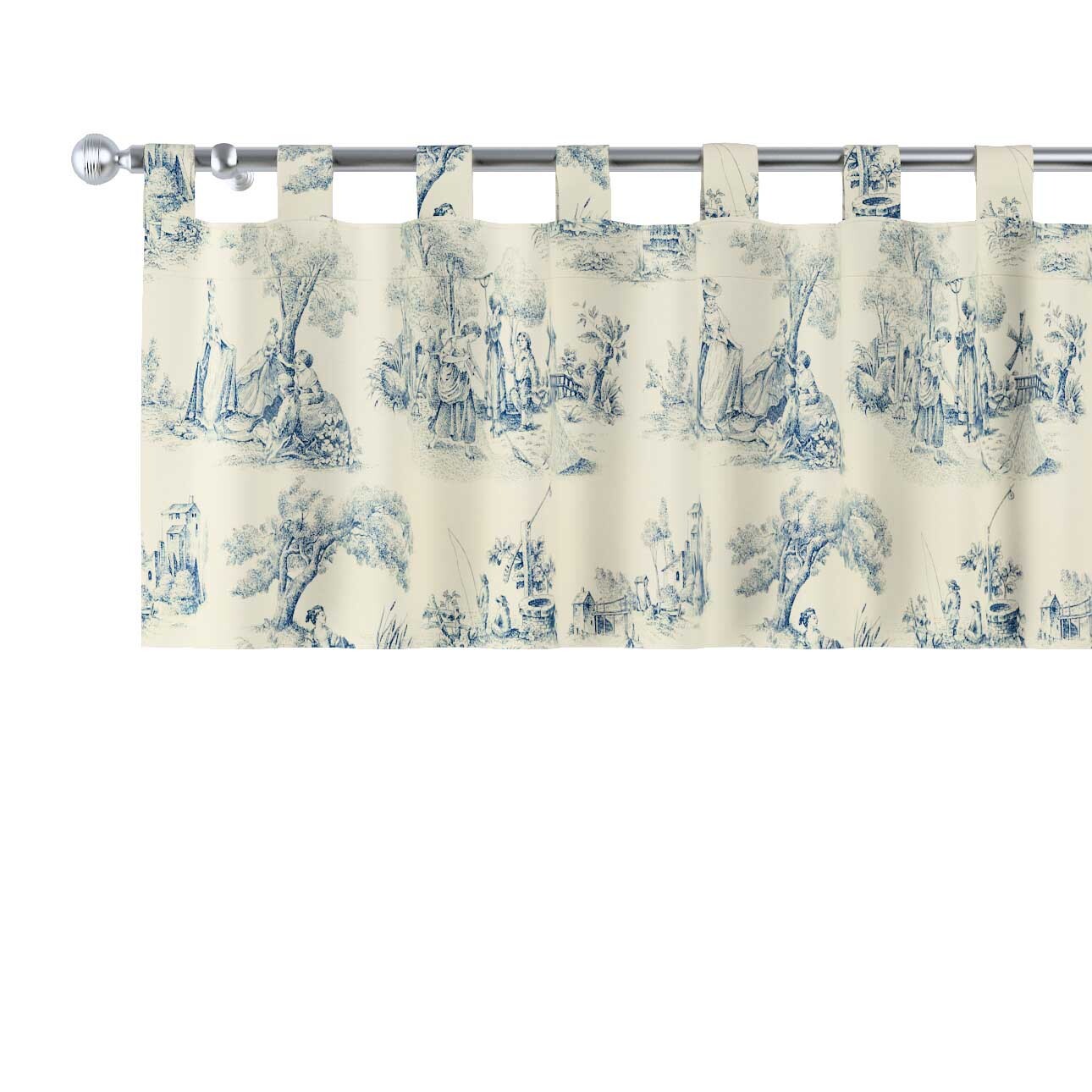 Krátky záves na pútkach, modrý vzor na svetlobéžovom podklade, 390 x 40 cm, Avinon, 132-66