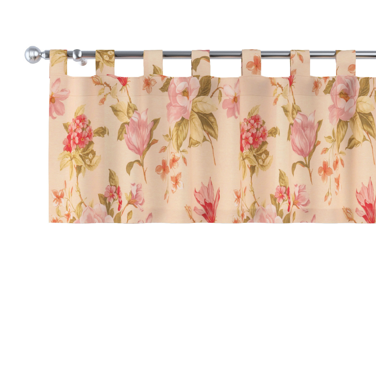 Krátky záves na pútkach, výrazný vzor ružovozelené kvety na ľanovom podklade , 260 x 40 cm, Londres, 143-87