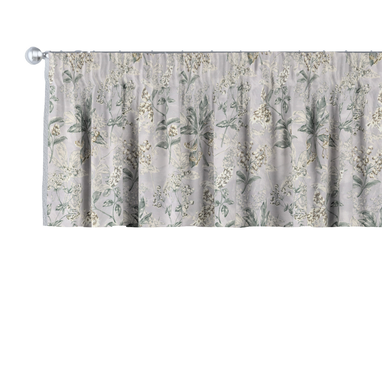 Krátky záves na riasiacej páske, sivo – béžové rastliny na sivom podklade, 130 x 40 cm, Londres, 143-37