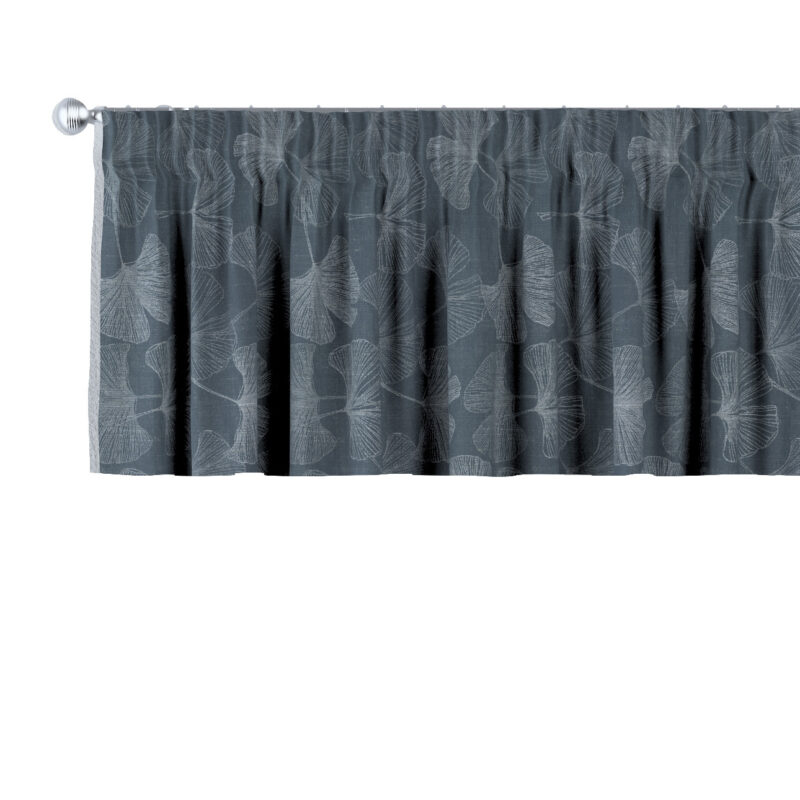 Krátky záves na riasiacej páske, strieborné listy ginka na grafitovom podklade, 390 x 40 cm, Flowers, 143-52