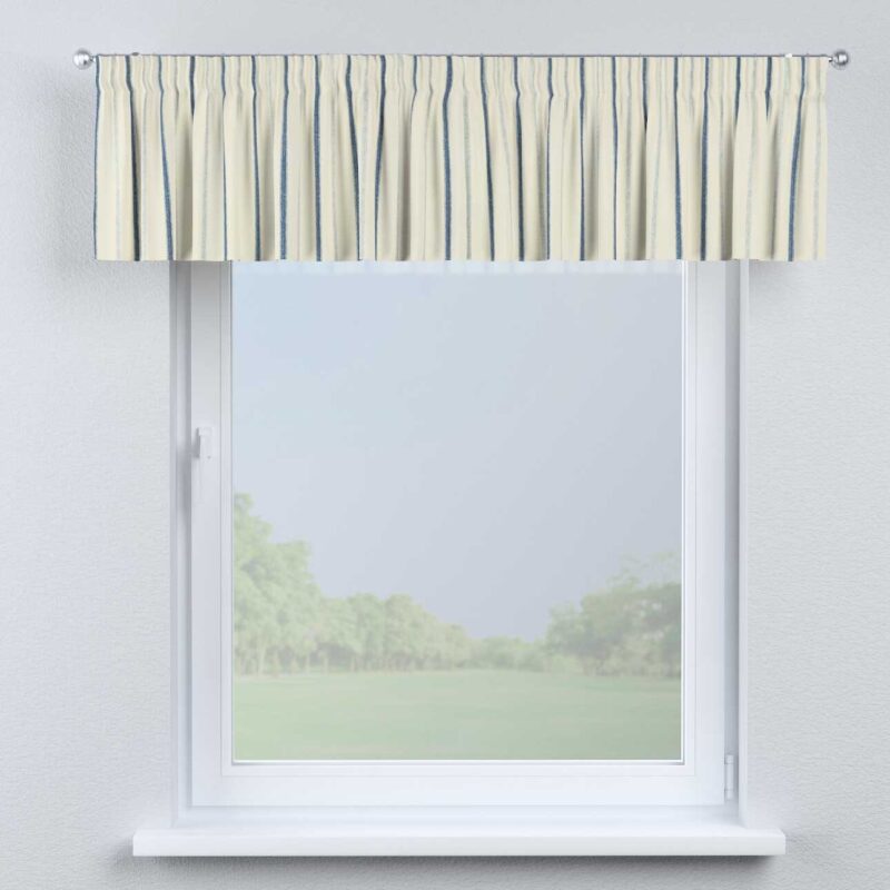 Krátky záves na riasiacej páske, svetlo a tmavomodrý pásik na svetlobéžovom podklade, 260 x 40 cm, Avinon, 129-66