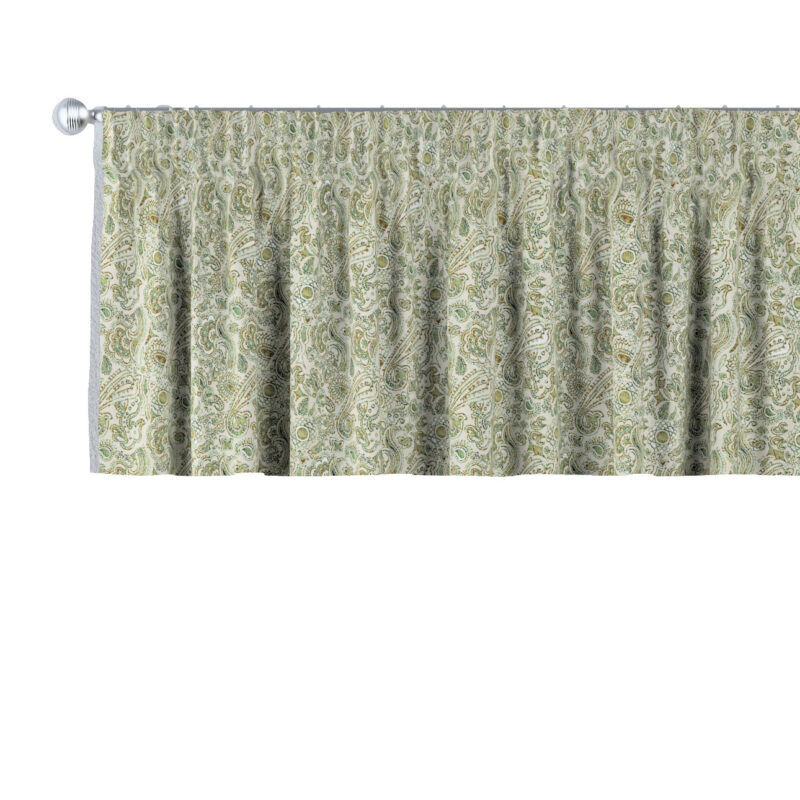 Krátky záves na riasiacej páske, zeleno – pomarančové vzory na béžovom podklade, 130 x 40 cm, Flowers, 143-68