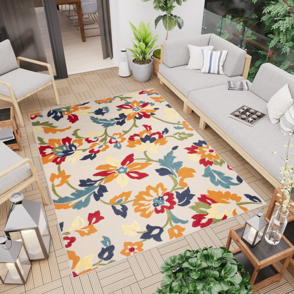 Krémový terasový koberec so vzorom farebných kvetov Šírka: 80 cm | Dĺžka: 150 cm