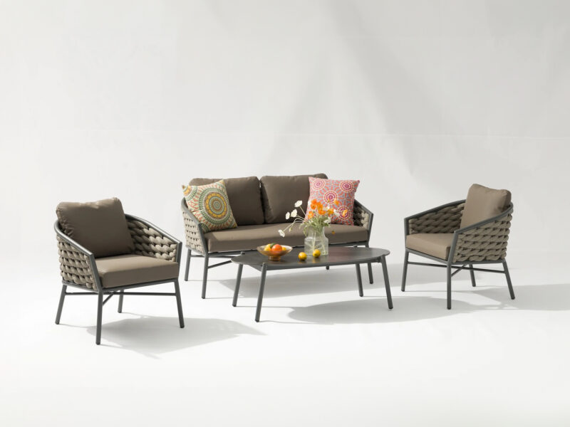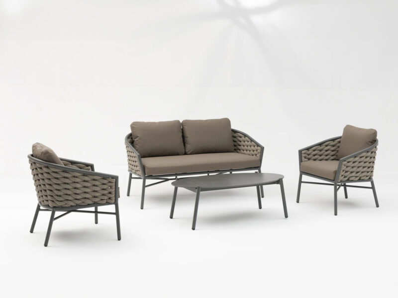 Sedacia súprava Kreta v sebe spája moderný dizajn a pohodlie, čím vytvára príjemné miesto na oddych v exteriéri. Nadčasové prevedenie s prepracovanými detailmi z nej urobí dominantu vašej záhrady
