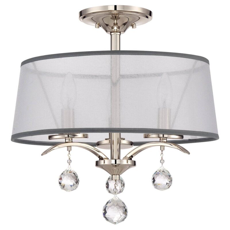 Stropné svetlo Whitney – základné osvetlenie s elegantným vkusom Stropné svietidlo Whitney ponúka veľa výhod: Je vybavené elegantnou striebornou povrchovou úpravou s názvom „Imperial Silver“. Z rámu, ktorý je vybavený tromi svetlami sviečok, visia nádherné prívesky z krištáľu, v ktorých sa emitované svetlo láme, takže kryštály začnú trblietať. V neposlednom rade je tu biely organzový odtieň s tmavosivými rámami, ktorý vďaka jemnej priehľadnosti vytvára veľmi atmosférickú svetelnú náladu. Whitney sa dodáva vrátane štyroch stropných tyčí (2 x 15,2 cm, 2 x 30,5 cm) a je možné ju preto namontovať aj ako závesné svietidlo.