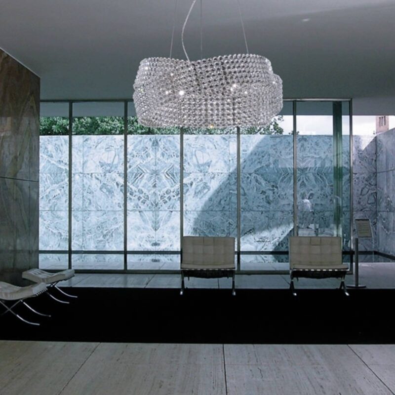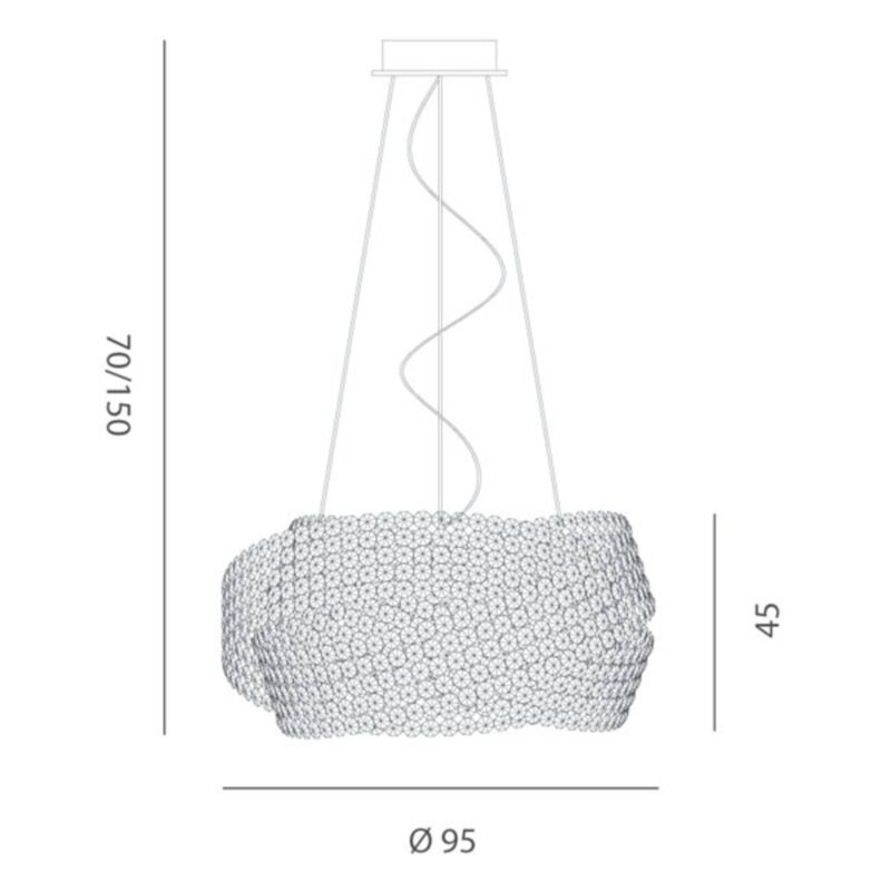 Ušľachtilé a jednoducho mimoriadne krásne – Krištáľová závesná lampaTento model využíva rôzne talianske kryštály, ktoré boli spracované v českom bruse pre nádherný vzhľad. Tieto kovové štruktúry sa strácajú v pozadí, a tak nenápadne zabezpečujú robustnú konštrukciu. Závesné svietidlo dotvára jasná, teplá svietivosť, ktorú vytvárajú žiarovky G9. Tým sa svietidlo bez problémov hodí do rôznych prostredí a zaručuje vysokú harmóniu. Celková hmotnosť svietidla je 32 kilogramov.