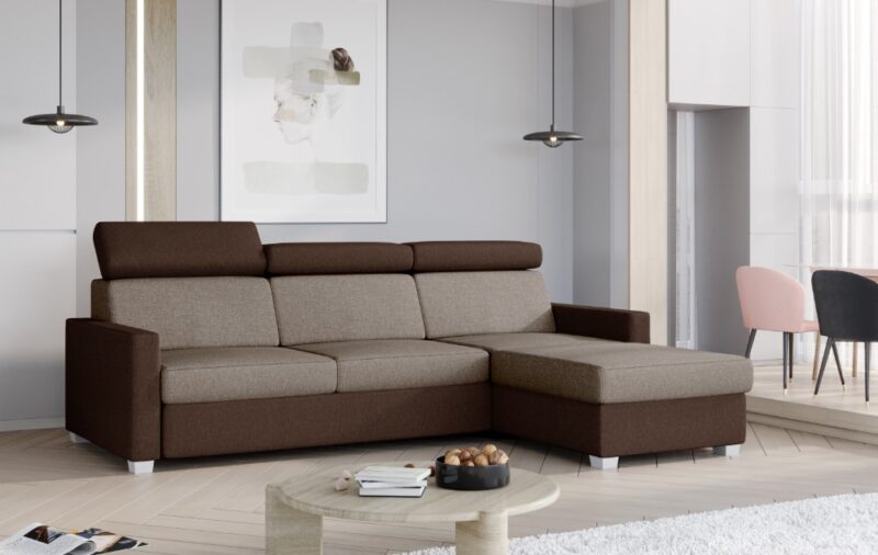 Moderná rohová sedačka KRISTIAN vám poskytne dostatok miesta a pohodlia. Okrem elegantného vzhľadu sedačka ponúka aj možnosť rozkladu. Okrem funkcie rozkladu sedačka ponúka aj praktický úložný priestor skrytý pod sedením a polohovacie záhlavníky. Sedák je vyrobený z PUR peny, ktoré vám poskytnú pokojný a nerušený spánok. Sedačka je čalúnená v kvalitnej hnedej poťahovej látke Inari 23/28, ktorá má vysokú odolnosť.Celkový rozmer sedačky: (š/h/v) 215 x 162 x 135 cm. Podrobnejšie rozmery v nákrese.Spacia plocha: 120 x 90 cm.Sedacia súprava je pravá, vhodná do pravého rohu.Dodávame v demontovanom stave
